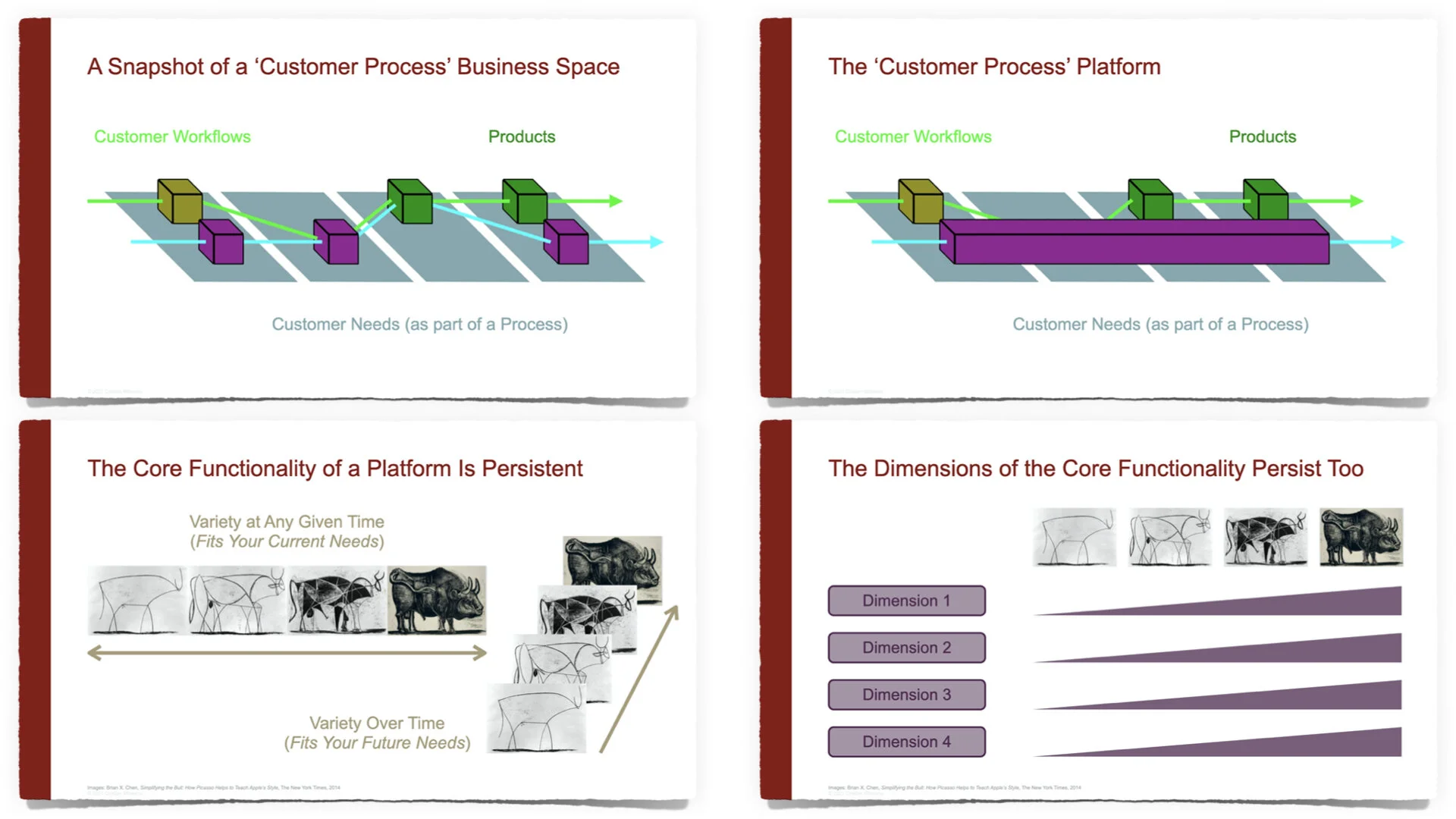 This structured approach to the customer needs and the corresponding product functionalities reveals where all major efficiencies (i.e., higher speed, shorter time) can be created. And it also reveals where the opportunities for creating economic lock-ins (i.e., monopolies) across and along the data/information flows are. As a result, it provides a clearer way of thinking about platforms in the product context: a basic unified set of functionalities that addresses all needs within a clearly-defined domain, allowing for further customer augmentation and offering economic lock-in to the provider.